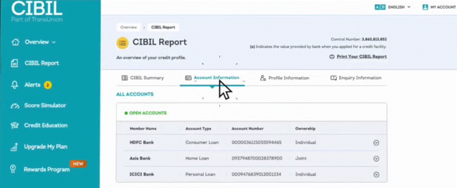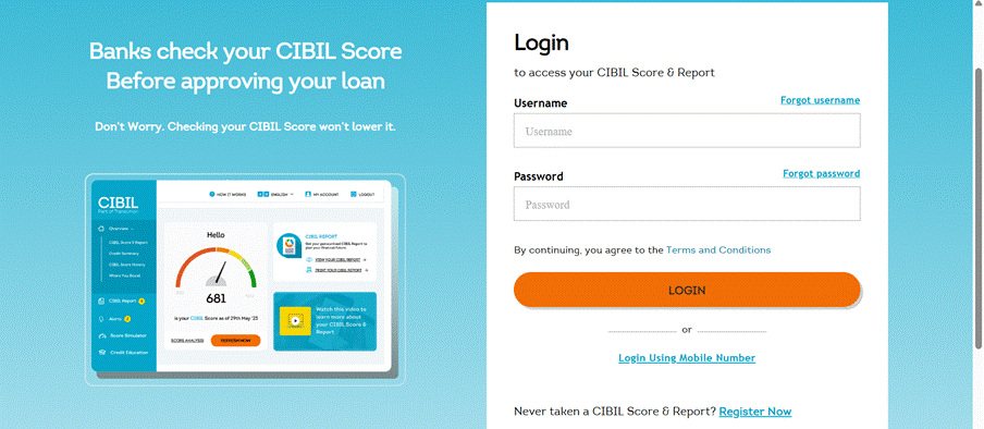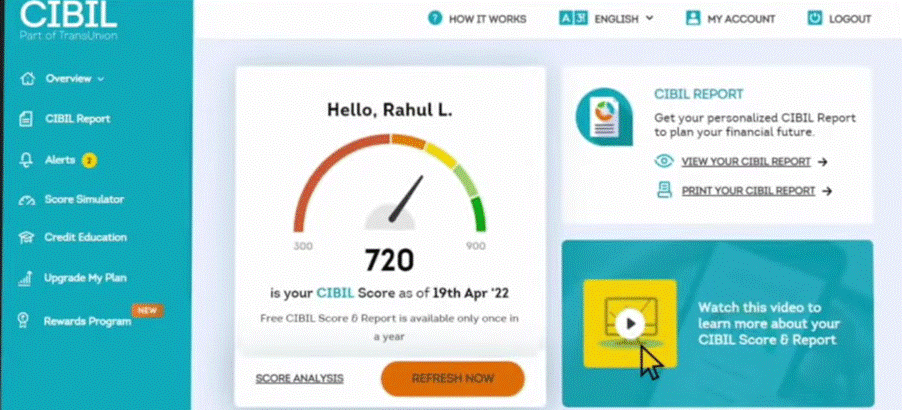 Click on the ‘CIBIL Report’ in the left navigation bar or ‘View Your CIBIL Report’ in the right navigation bar.