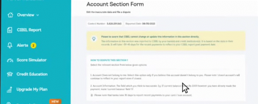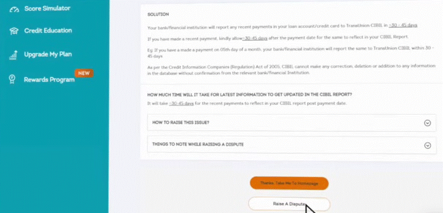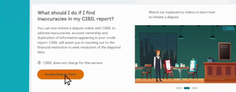 Here you can get to know more about the types and processes of disputes. After understanding everything there is to know about the CIBIL disputes, click on the āAccess Dispute Formā.