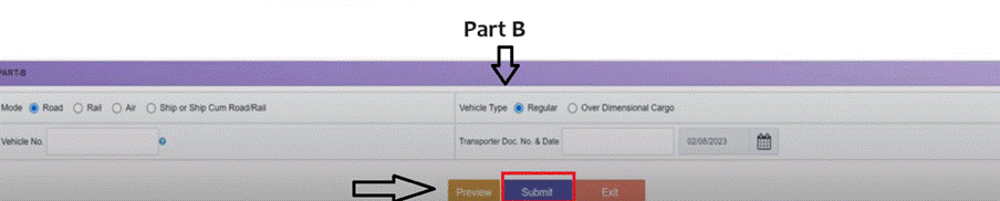 After all the details have been filled out, click Submit. The system will check your details. If everything is good, the system will automatically generate the E-Way Bill (Form EWB-01) bearing a distinct 12-digit E-Way Bill Number (EBN).