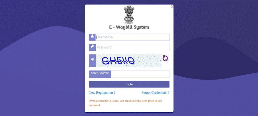 Visit the official E-Way Bill portal for seamless eWay bill login. Enter your username (ID), password, and captcha code, and then press the Login button.