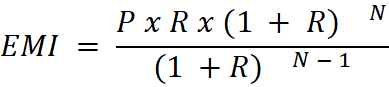 Here is a standard personal loan EMI formula that many lenders use to calculate the monthly payments: